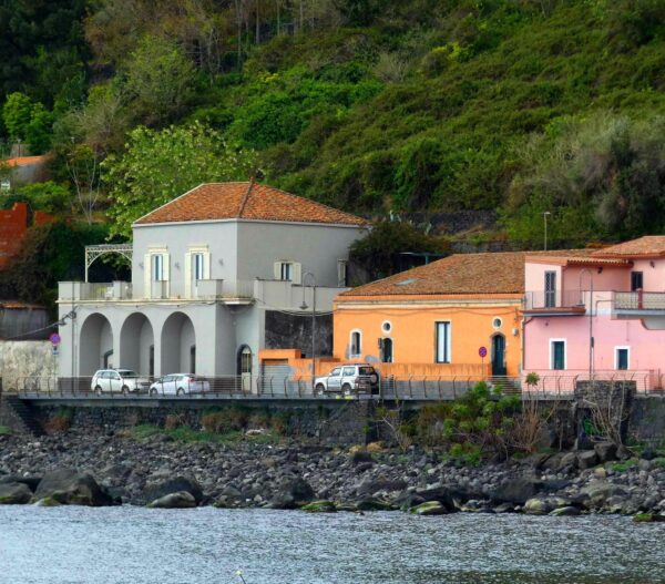 Petit hameau balnéaire de la ville baroque d’Acireale, Santa Maria la Scala, avec ses maisons multicolores et ses restaurants de fruits de mer, est une destination touristique prisée. On croirait un coin des Cinque Terre transplanté en Sicile, dominé par un promontoire de lave recouvert d’une nature sauvage. Les plages sont de galets, mais les embruns y sont authentiques. Malheureusement, l’Etna est invisible, parce que le promontoire et les immeubles du centre d’Acireale le masquent complètement.