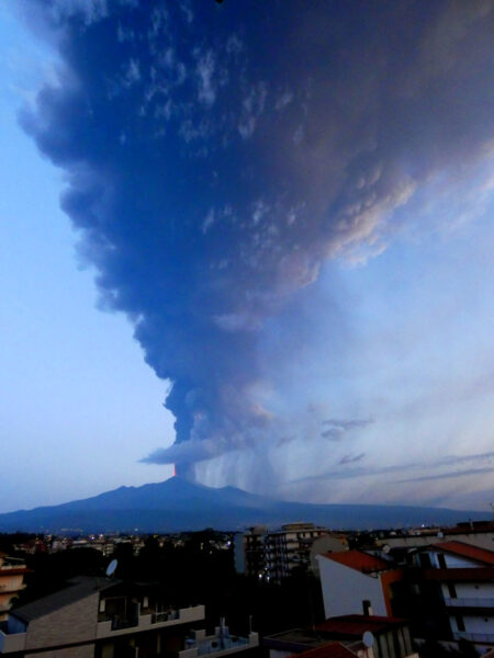 Le vent qui avait initialement porté les cendres vers Milo, Zafferana et Giarre a soudainement changé de direction et la matière volcanique est également tombée sur Acireale, Aci Trezza, Aci Catena, Catane. L’éruption entière a duré bien plus de 5 heures, avec une puissance qui n’a commencé à diminuer que dans les 60 dernières minutes.
